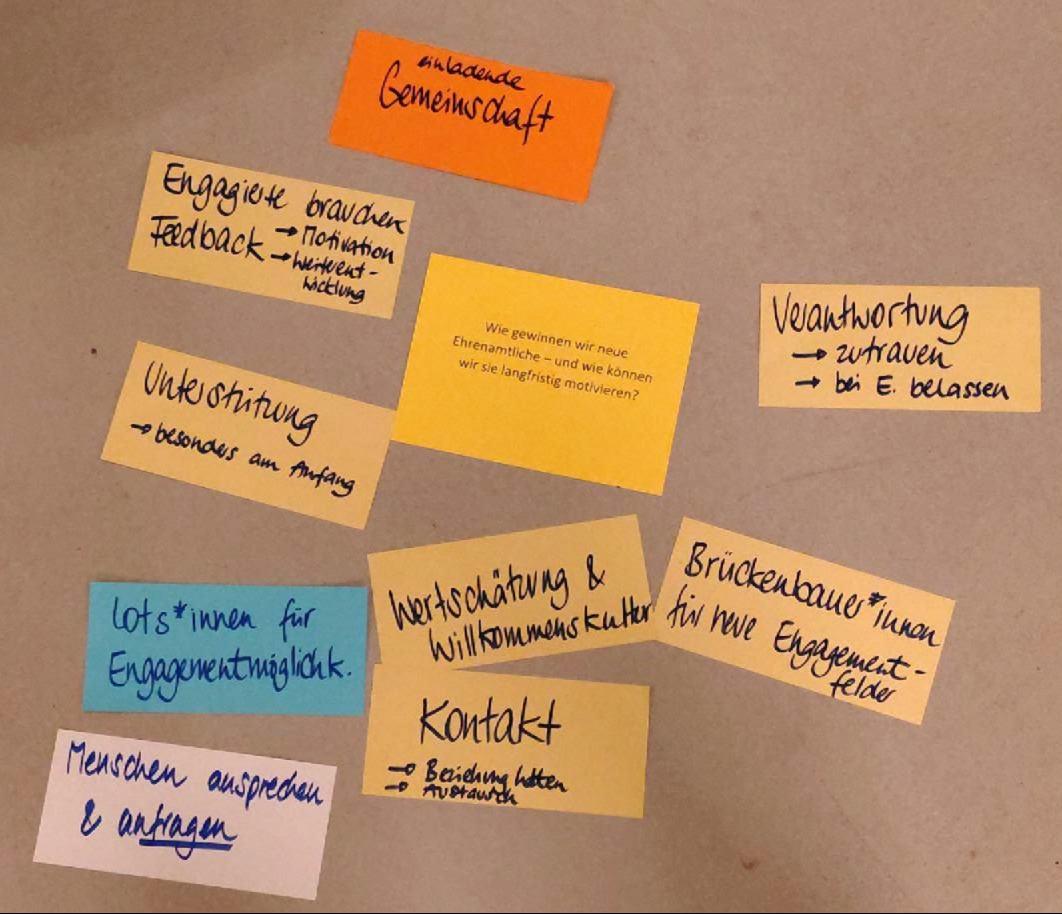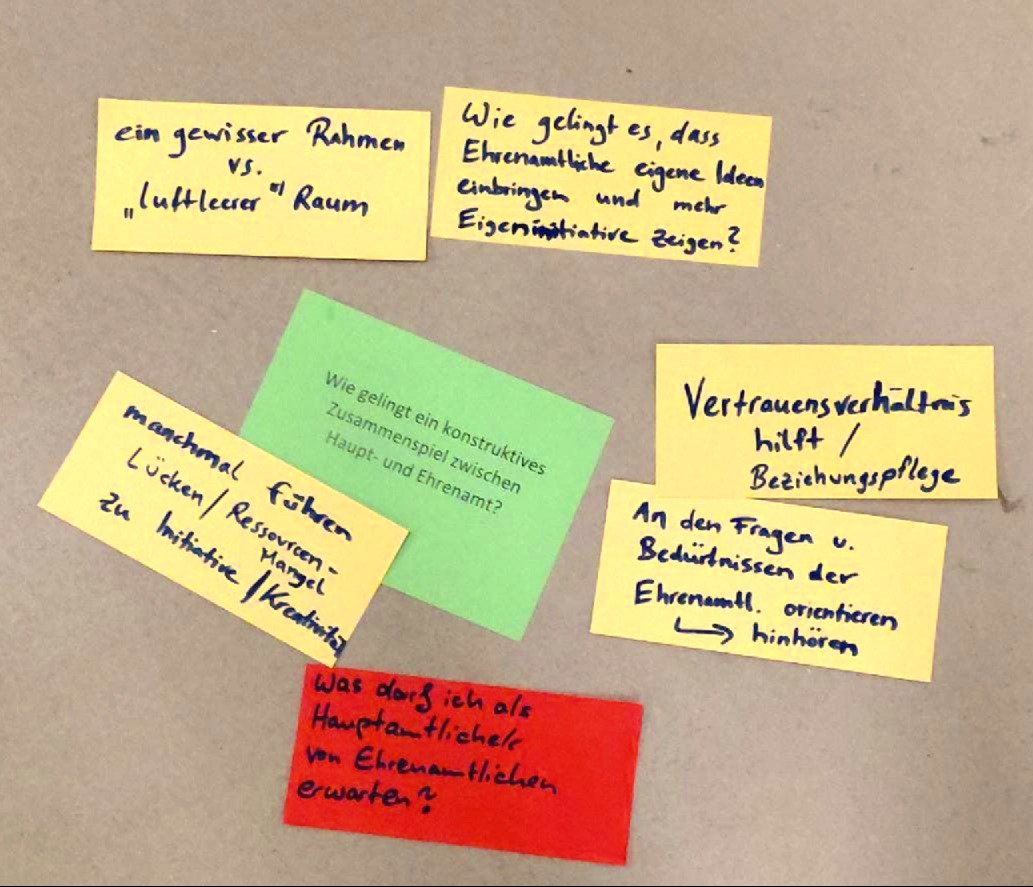 Beim Zusammenspiel von Haupt- und Ehrenamt wurde deutlich, dass gegenseitiges Vertrauen, Zuhören und die Orientierung an den Bedürfnissen der Engagierten entscheidend sind. Gleichzeitig können Lücken oder begrenzte Ressourcen kreative Lösungen und neue Initiativen hervorbringen.