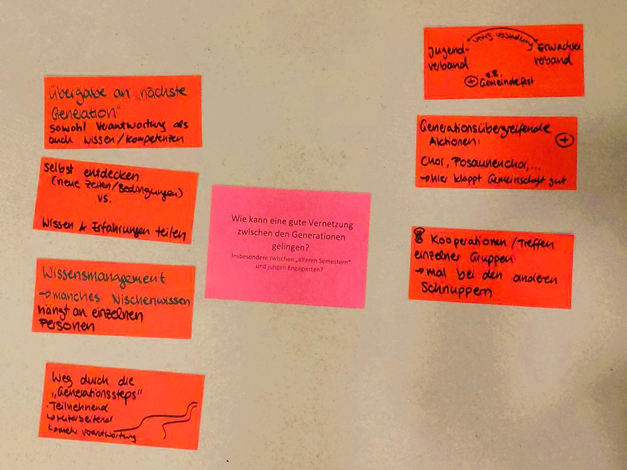 Ein weiterer Schwerpunkt lag auf der Vernetzung zwischen den Generationen. Genannt wurden unter anderem die bewusste Übergabe von Verantwortung, generationenübergreifende Aktionen sowie der Austausch von Wissen und Erfahrungen.